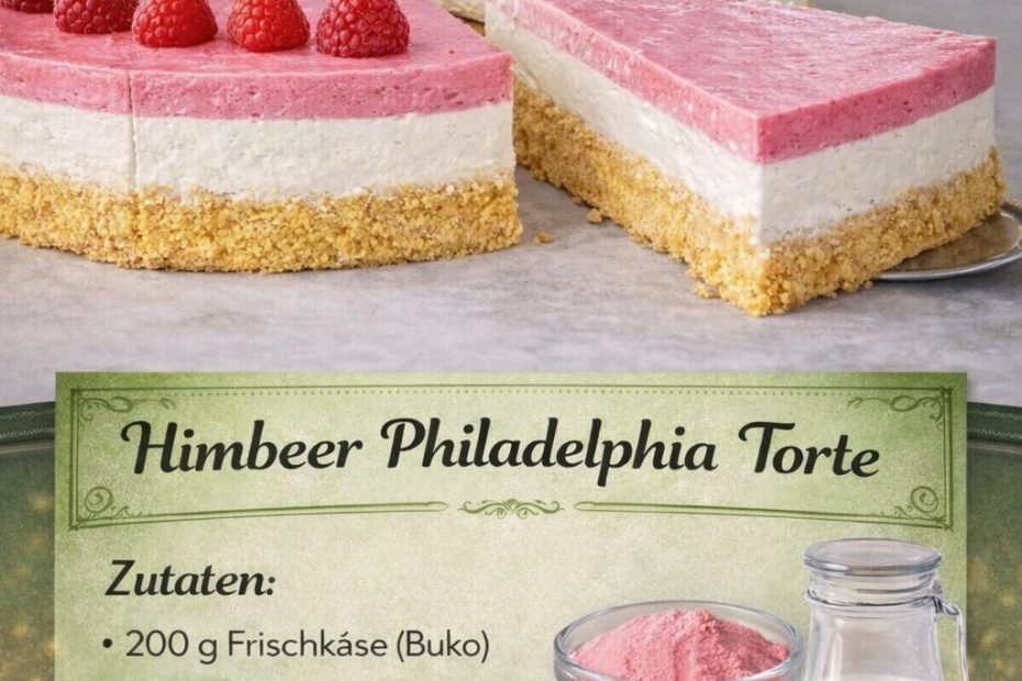 🍓 Himbeer-Philadelphia-Torte (ohne Backen, 3 Schichten) 📝 Zutaten (Ø 26 cm Springform) Für den Boden: Für die weiße Creme: Für die Himbeer-Schicht: Zum Dekorieren: 👩🍳… Read More »Himbeer Philadelphia Torte (ohne Backen)