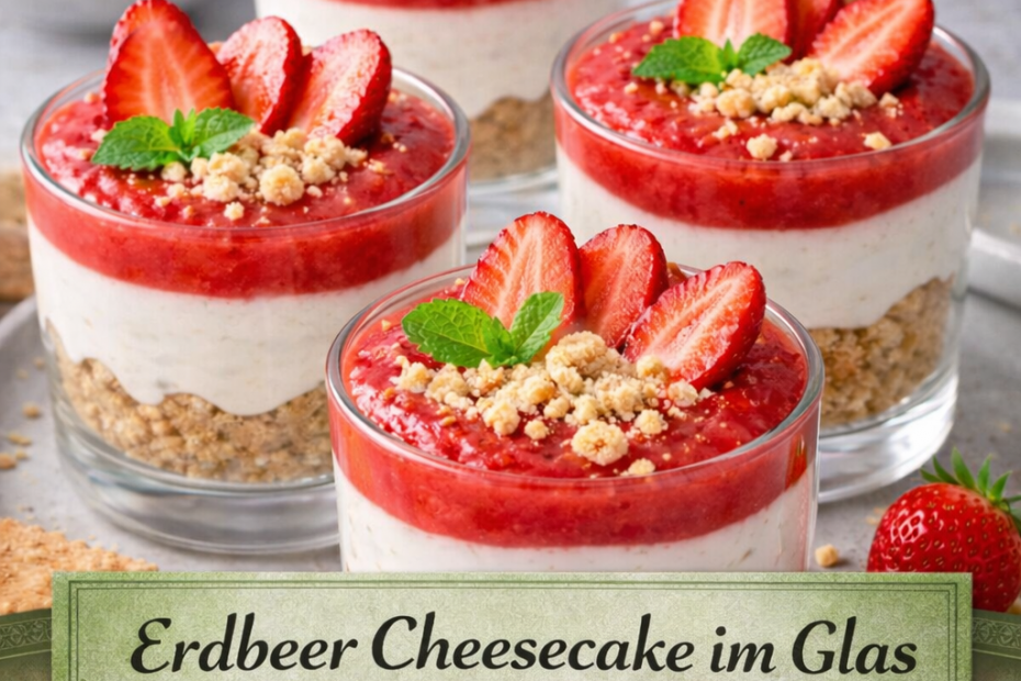 📝 Zutaten (für ca. 4 Gläser) Für den Boden: Für die Creme: Für das Erdbeer-Topping: 👩🍳 Zubereitung 1️⃣ Boden vorbereiten Kekse fein zerbröseln (Mixer oder… Read More »Erdbeer-Cheesecake im Glas (ohne Backen)