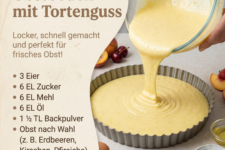 𝗭𝗨𝗧𝗔𝗧𝗘𝗡: 3 Eier 6 EL Zucker 6 EL Mehl 6 EL Öl 1 ½ TL Backpulver Obst nach Wahl (z. B. Erdbeeren, Kirschen, Pfirsiche) Tortenguss… Read More »Früchtekuchen
