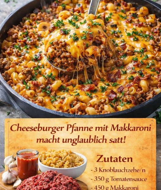3 Knoblauchzehen350 g Tomatensauce170 ml Milch1 Tl Zucker (optional)450 g Makkaroni500 g Rinderhackfleisch1 gehackter Zwiebel200 g geriebener Cheddar Käse2 El Olivenöl1 Tl SalzPrise Pfeffer2 El… Read More »Illegal gut Cheeseburger Pfanne macht unglaublich Satt!