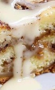 Sobald der Kuchen aus dem Ofen kommt, bereite die Vanilleglasur zu. In einer großen Schüssel, Puderzucker, Vanille und Schlagobers mit einem Schneebesen glatt rühren.