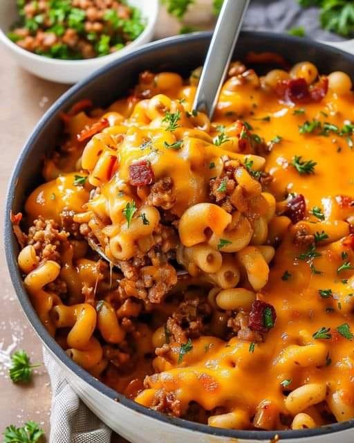 Dann nur noch die Makkaroni unterheben und den Käse nacheinander dazugeben, bis sich alles vermischt und der Käse geschmolzen ist.Fertig!