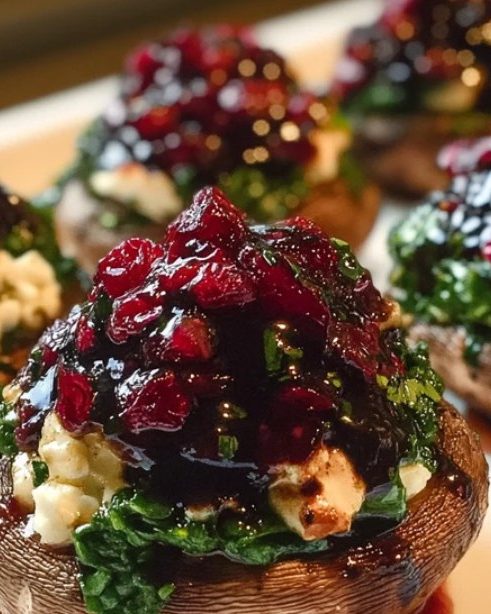 Die fertigen, glasierten Champignons auf einem Teller anrichten und mit der warmen Balsamico-Glasur beträufeln. Dies gibt den Champignons einen glänzenden, appetitlichen Look und verstärkt den Geschmack. Dieses Gericht lässt sich sowohl warm als auch bei Raumtemperatur genießen, was es besonders praktisch für Festlichkeiten oder als Vorspeise bei einem Menü macht.
