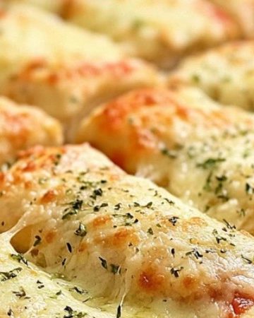 Die Brotstangen im vorgeheizten Ofen etwa 10-12 Minuten backen, bis der Käse geschmolzen und goldbraun ist.