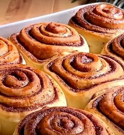 sich seine Größe verdoppelt gären und dann gießen wir Kondensmilch auf die Oberfläche der Zimtschnecken und geben es in einen