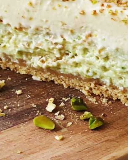 Schichten: Eine Schicht Biskuits in einer Form auslegen, gefolgt von einer Schicht Pistaziencreme.