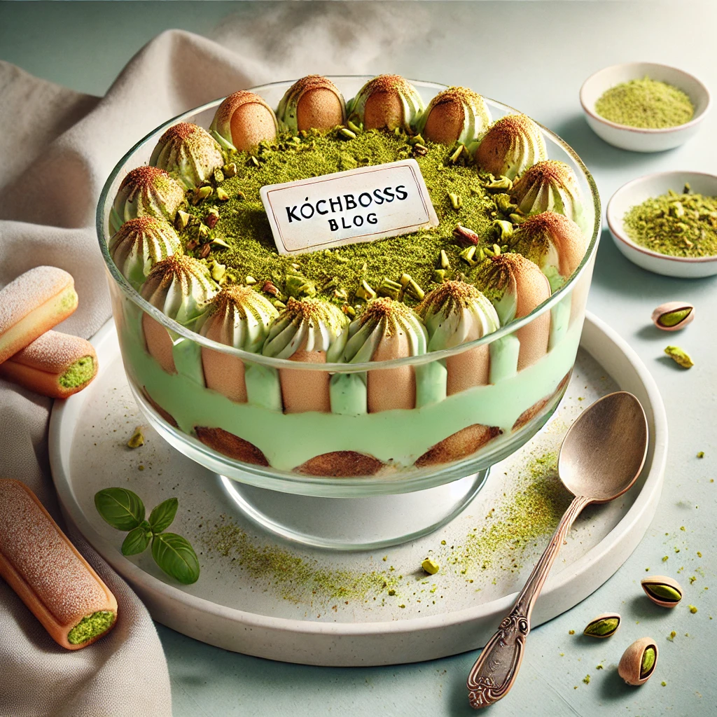 6. Dekoration: Vor dem Servieren mit Kakaopulver bestäuben und gehackte Pistazien darüber streuen.