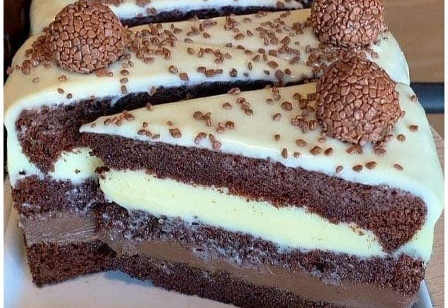 Schoko-Vanille-Schichtkuchen,Sehr saftig und cremig zugleich