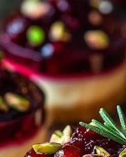 Bringen Sie Eleganz auf Ihren Festtagstisch mit diesen herzhaften Cranberry- und Pistazien-Käsekuchen-Cups. Mit einem nussigen Pistazienboden, einer cremigen Füllung mit Parmesan und einem fruchtig-säuerlichen Cranberry-Topping sind diese Mini-Käsekuchen genauso schön wie köstlich.
