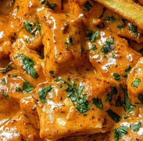 Servieren Sie das Butter Chicken heiß und genießen Sie es zusammen mit den knusprigen Pommes. Dieses Gericht passt auch hervorragend zu Reis oder Naan-Brot, wenn Sie möchten. Jeder Bissen wird ein Genuss sein, der die Aromen Indiens mit dem Komfort von Pommes vereint.