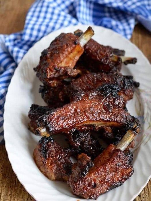 - Träufeln Sie ein wenig Öl über die Rippchen, um sie saftig zu halten….