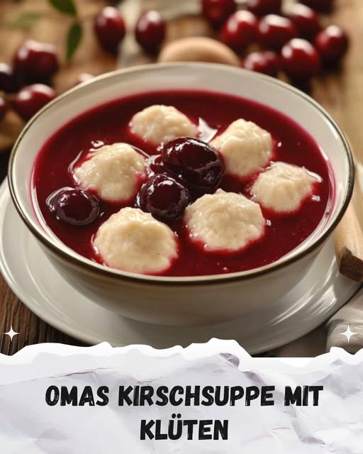 Servieren: Die Klüten in die Kirschsuppe geben und alles zusammen warm oder kalt servieren.