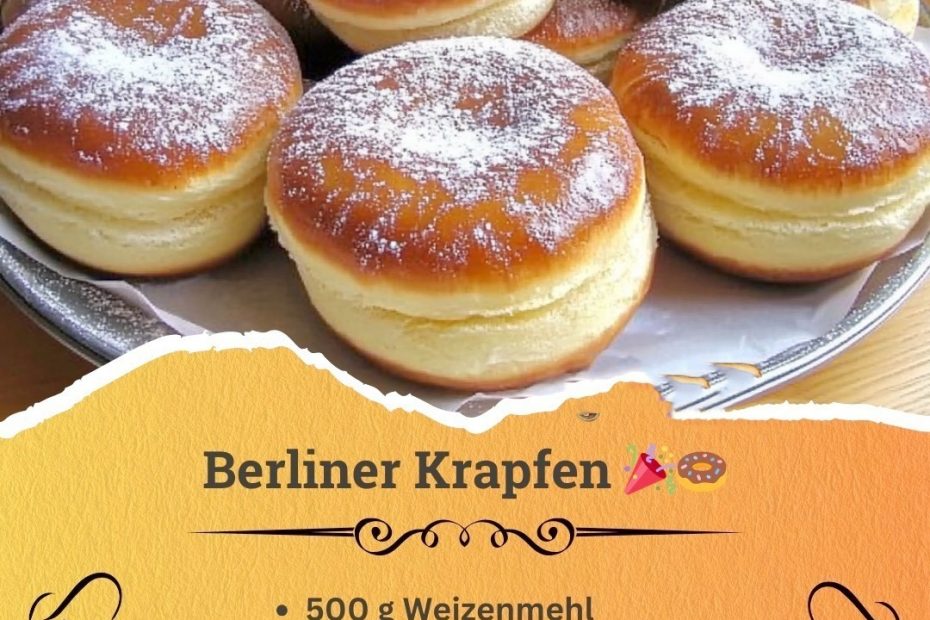 Zutaten: 500 g Weizenmehl 1 Pck. Trockenhefe 250 ml Milch 4 Eigelb 100 g Zucker 60 g Butter Salz 1 Prise etwas Marmelade etwas Fett zu… Read More »Omas Berliner Krapfen