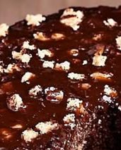 Nachdem der Kuchen vollständig abgekühlt ist, 30 g (1 Unze) Zartbitterschokolade schmelzen und über den Kuchen träufeln. Alternativ kannst du die Schokolade auch hacken und darüberstreuen, falls du eine stückigere Textur bevorzugst.