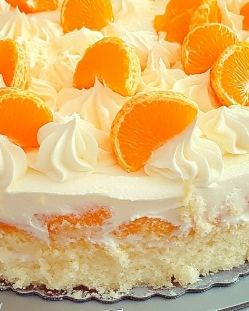 9️⃣ Die Creme auf dem abgekühlten Kuchen verstreichen und mit Mandarinen belegen.