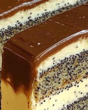 Schichtkuchen aus Mohn und Vanille mit zartschmelzender Schokoladendecke