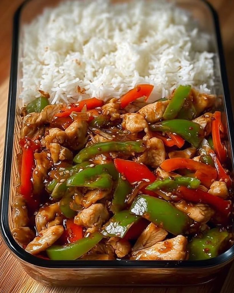 - Serviere die bunte Hähnchen Gemüsepfanne direkt mit frisch gekochtem Reis oder Nudeln. Lass es dir schmecken!