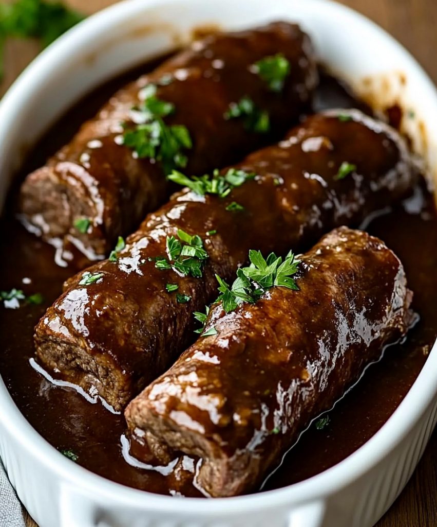 4. Die Rinderrouladen mit der Sauce servieren, dazu passen Kartoffeln oder Spätzle.