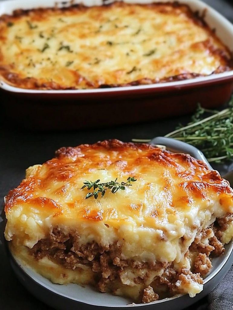 3. Blumenkohl in eine gefettete Auflaufform geben, mit Butterflocken belegen. Darauf die Hackmasse verteilen.