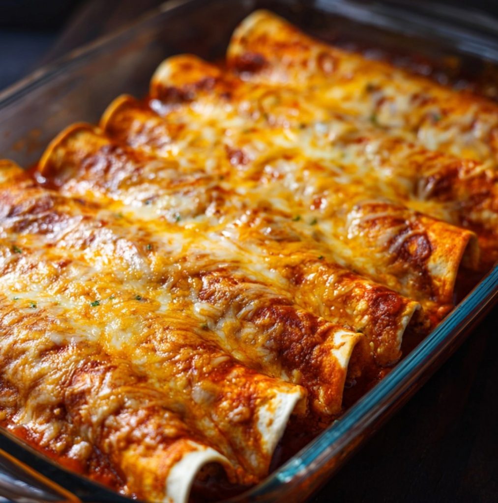 6. Backen: Den Ofen auf 180°C vorheizen und die Enchiladas für etwa 20-25 Minuten backen, bis der Käse geschmolzen und leicht goldbraun ist.