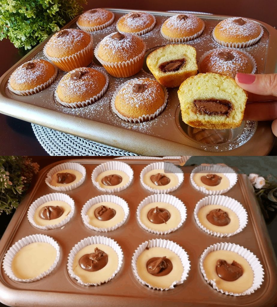 3. Nun die Schokoladenstückchen in den Muffinteig stecken. Bei 180°C 20 – 25 Minuten backen.Lecker und einfach!