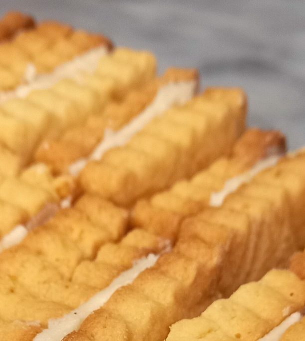 Die Kekse schmecken am besten, wenn sie über Nacht in einer luftdichten Dose ruhen – dann werden sie noch zarter und die Zitronencreme zieht wunderbar durch. Ideal zu Tee, Kaffee oder als sommerliche Süßigkeit! 🍋