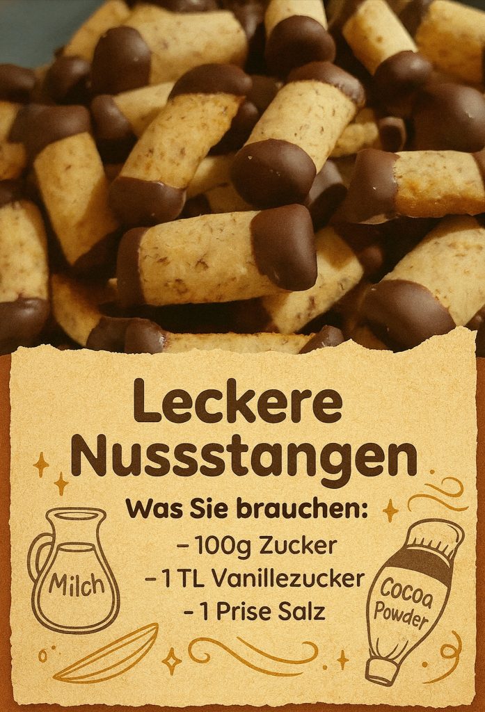 5. Backen: Den Backofen auf 180 °C vorheizen und die Nussstangen etwa 10-12 Minuten backen, bis sie leicht goldbraun sind.
