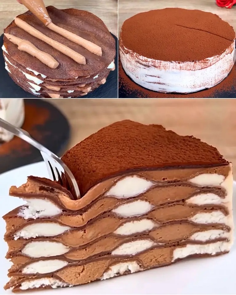 Schmelzen Sie die Schokolade mit der heißen Sahne und lassen Sie sie abkühlen. Schlagen Sie separat die Sahne mit dem Puderzucker. Kombinieren Sie dann die beiden Mischungen. Tippen Sie auf das Foto, um den Rest des Rezepts zu sehen