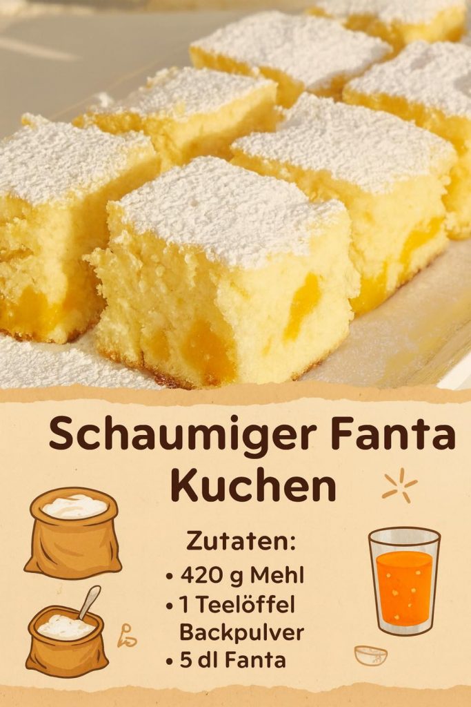 Fügen Sie das gesiebte Mehl der Mischung , Backpulver und alles unterrühren . Dann Öl und Fanta hinzufügen. Alles vorsichtig mischen.