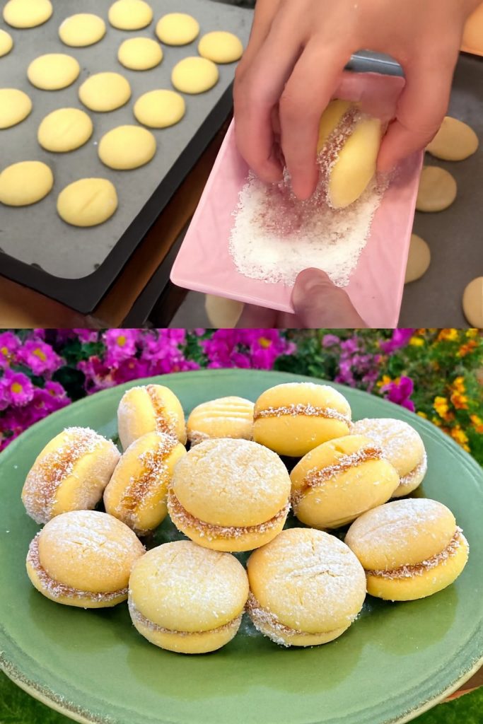 Vorsichtig zusammendrücken und mit leichtem Puderzucker bestäuben.