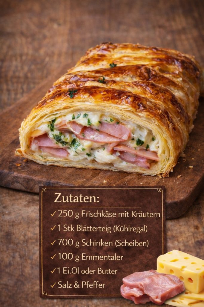 Gefüllter Blätterteigstrudel mit Schinken & Käse