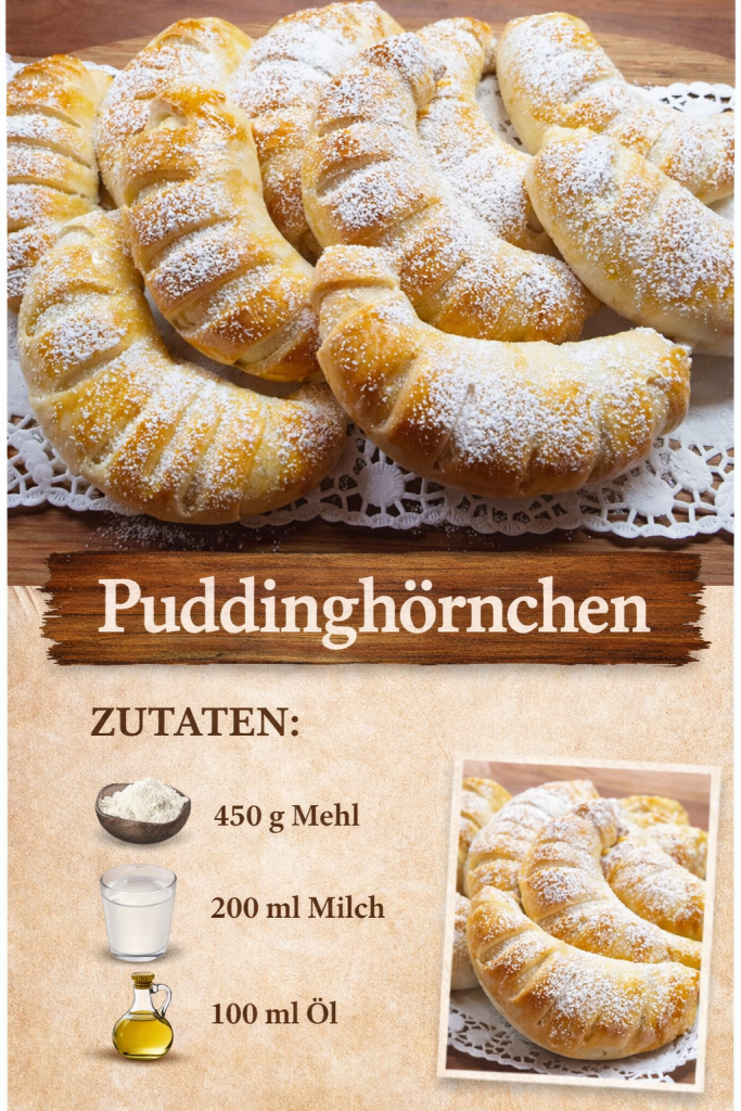 Servieren Sie die Puddinghörnchen warm und genießen Sie den unwiderstehlichen Geschmack.