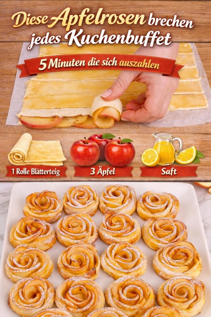 5 Minuten die sich auszahlen, diese Apfelrosen brechen jedes Kuchenbuffet