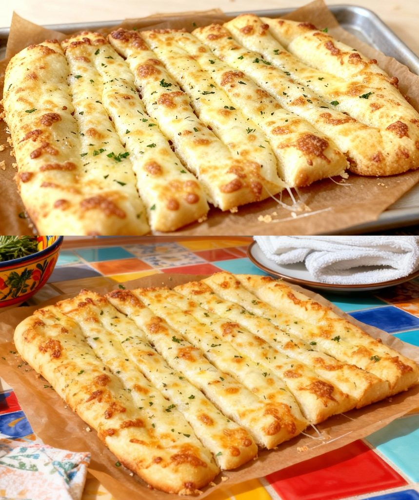 1. Blätterteig ausrollen, mit Knoblauchbutter bestreichen und mit Käse sowie Petersilie bestreuen.