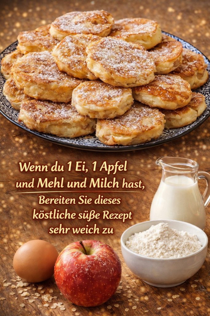 Wenn Du 1 Ei, 1 Apfel und Mehl und Milch hast, bereiten Sie dieses köstliche süße Rezept!