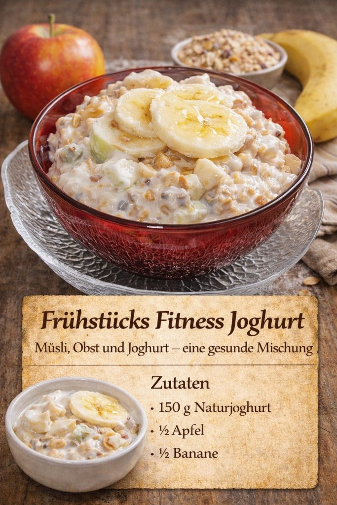 Mit Joghurt, Haferflocken und Müsli mischen.