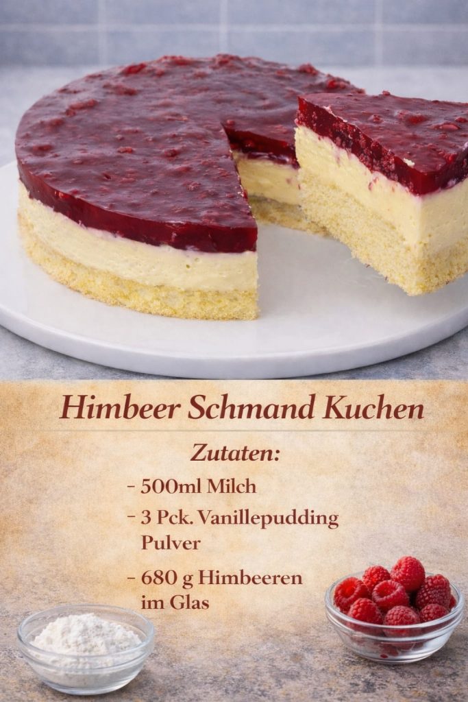 Himbeeren vorsichtig auf die Schmand-Schicht legen.
