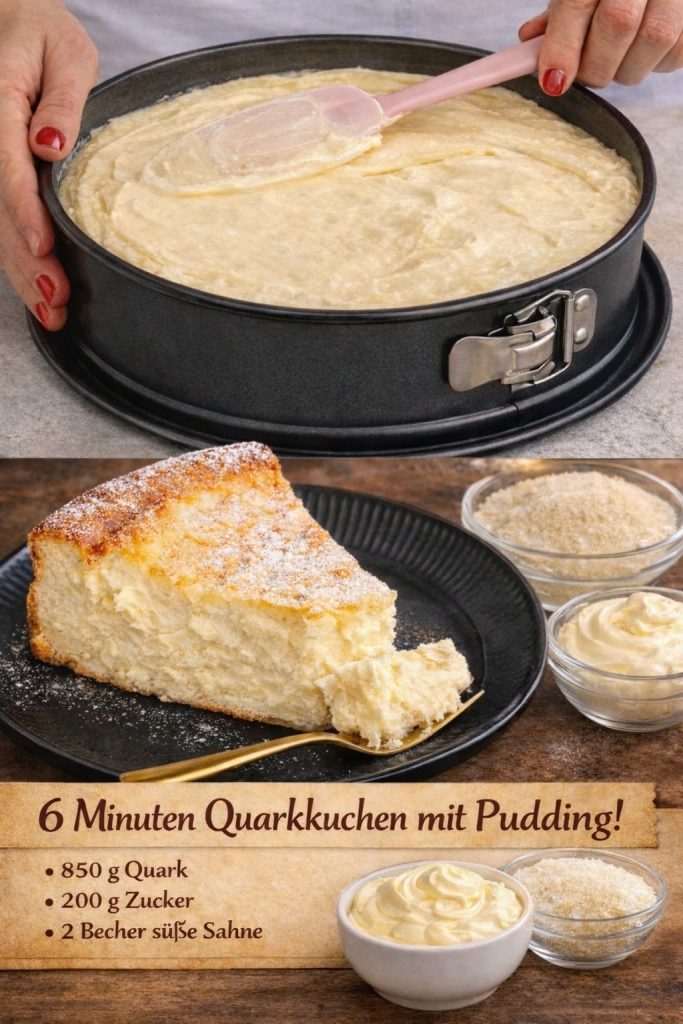 Quark, Zucker, Vanillezucker, Eier, Sahne, Puddingpulver und Salz
