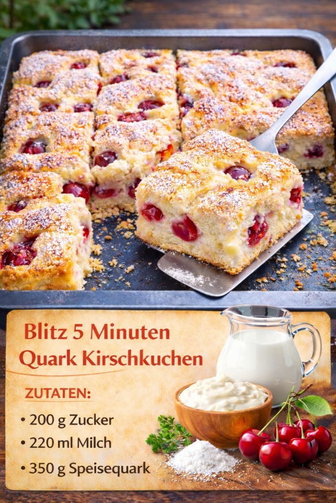 Jetzt das Quark mit einem Ei verrühren, eventuell süßen, und kleine Haufen zwischen den Kirschen verteilen.