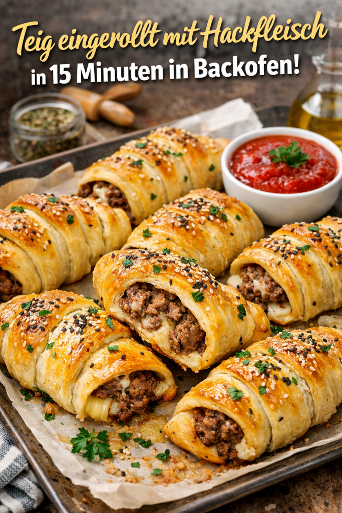 Teig eingerollt mit Hackfleisch – in 15 Minuten im Backofen