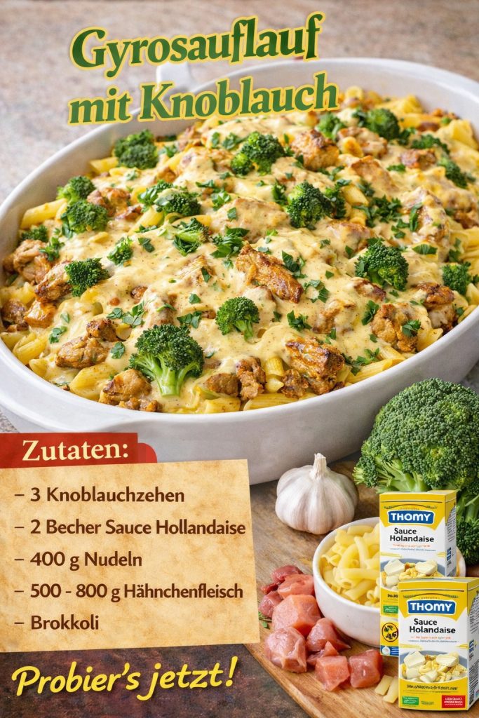 Gyrosauflauf mit Knoblauch und Sauce Hollandaise