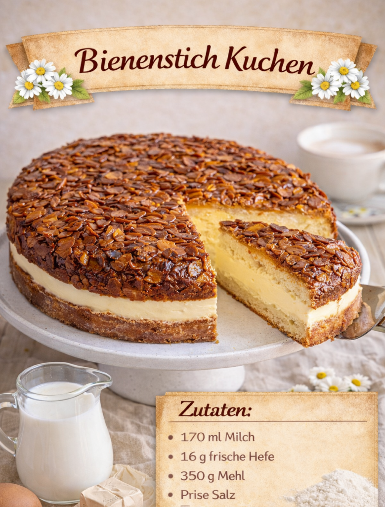 Den Kuchen mindestens 1–2 Stunden im Kühlschrank kaltstellen, damit die Creme fest wird.