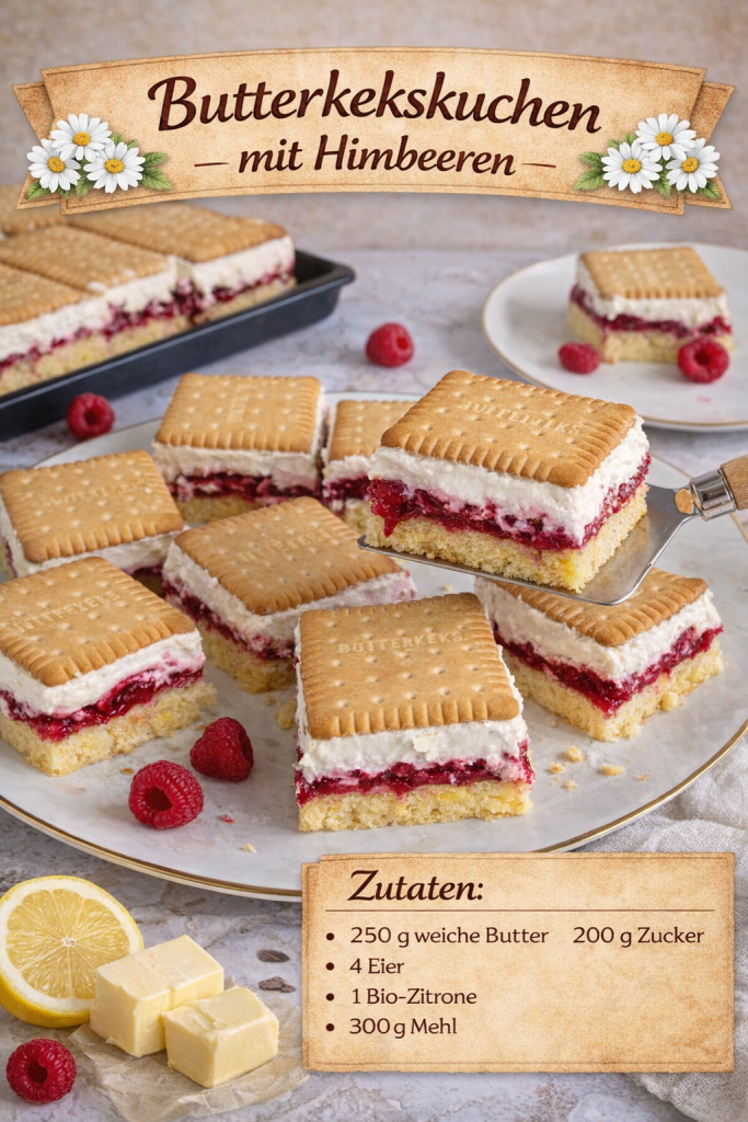 Zum Schluss die Butterkekse dicht an dicht auf die Sahneschicht legen.