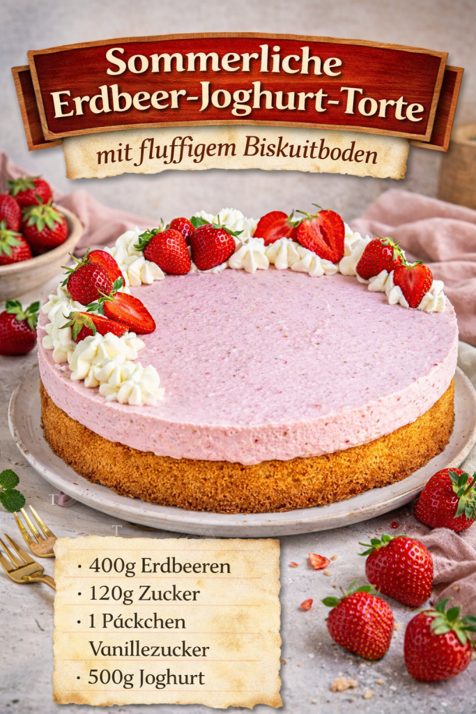 🍓 Sommerliche Erdbeer-Joghurt-Torte mit fluffigem Biskuitboden