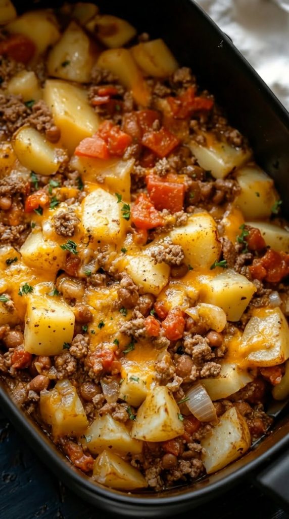 Abdecken und auf niedriger Stufe 6–7 Stunden garen, bis die Kartoffeln weich sind.