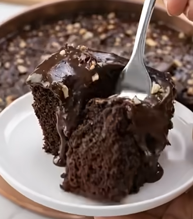 8️⃣ Ganache über den Kuchen gießen und mit gehackten Nüssen bestreuen.