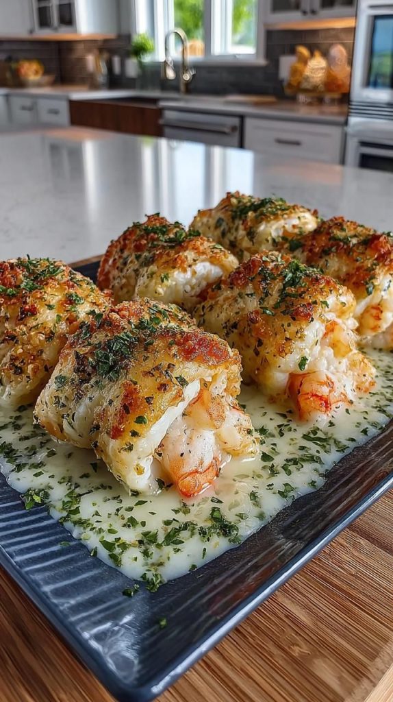 Cremige Knoblauch-Parmesan-Garnelen-Röllchen