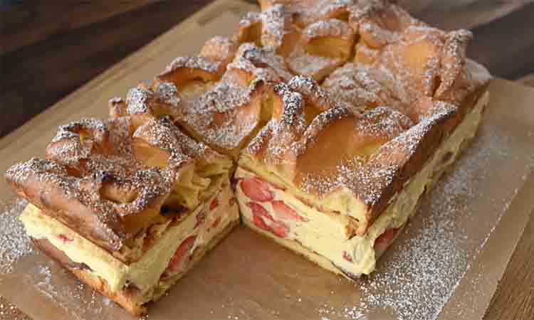 Eclair mit Vanille- und Erdbeercreme ist wirklich lecker