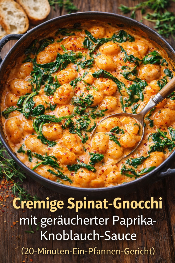 🥔 Cremige Spinat-Gnocchi mit geräucherter Paprika-Knoblauch-Sauce