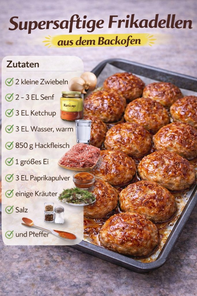Nun bei 210° ca. 20-30 Minuten je nach Größe der Frikadellen backen.